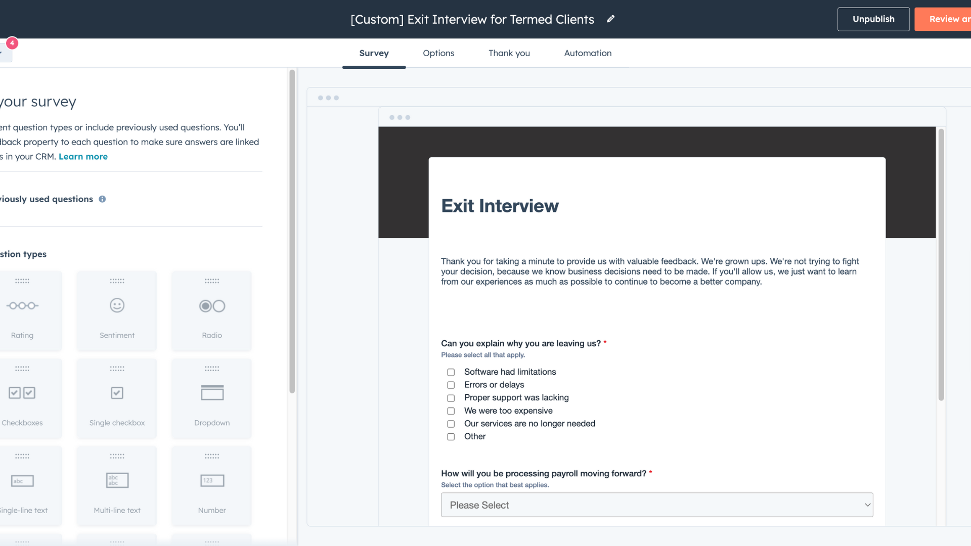 - Post-survey automation