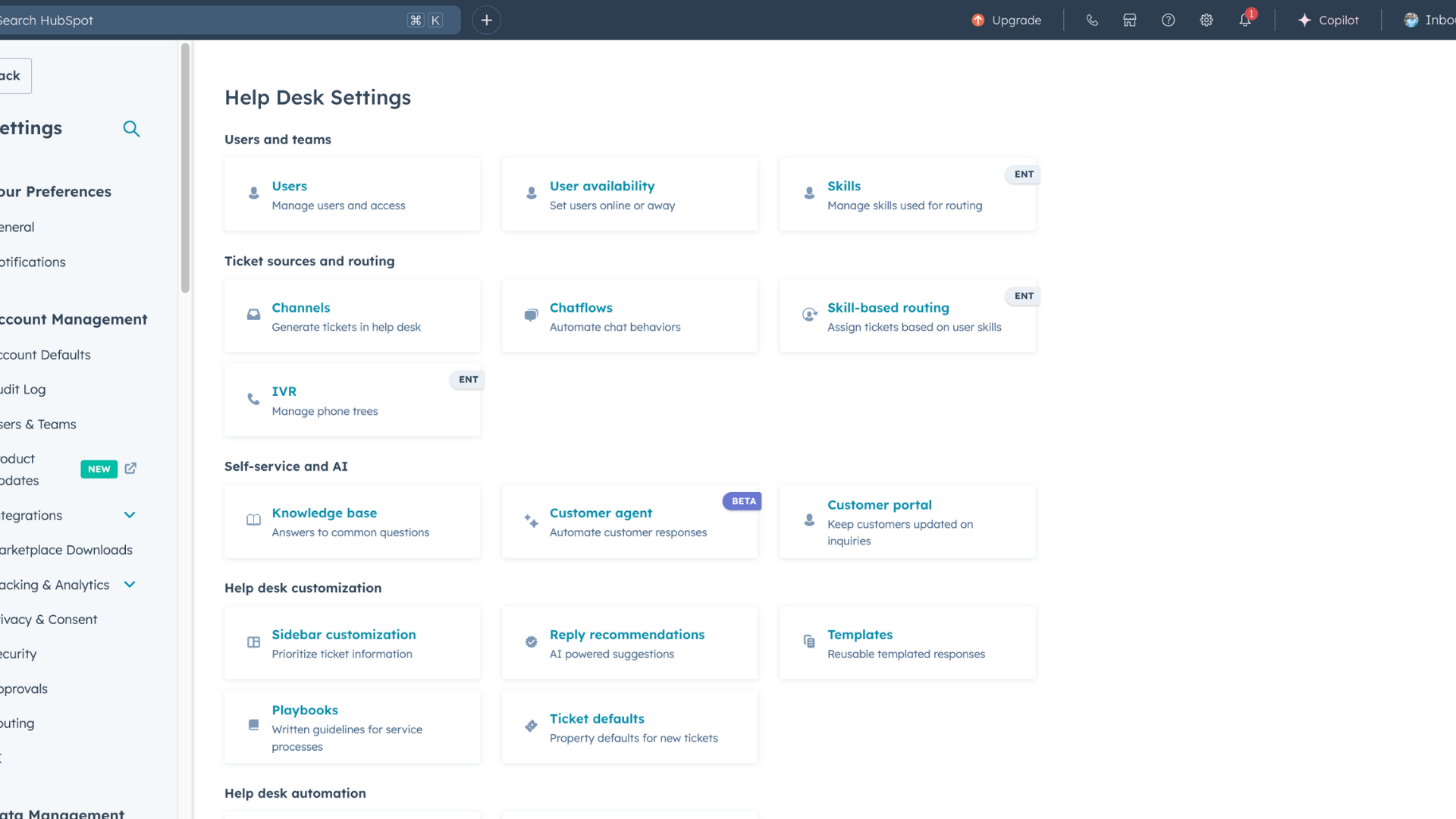 - Help desk configuration
